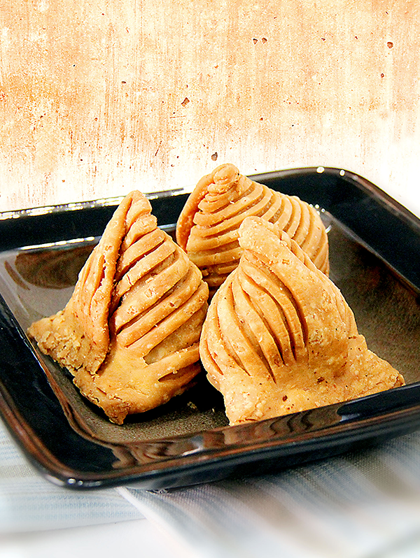 Recipe Method: For Cover: Mix salt, carom seeds in the flour. Add melted clarified butter and mix well. Add a little water at a time and knead into a soft pl...