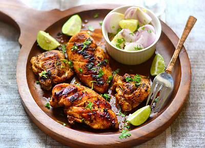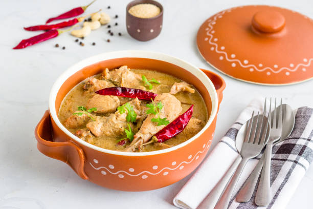 Start by washing the chicken with fresh water and patting it dry. Keep it in a bowl and add ginger garlic paste, along with cashew and poppy seeds powder to the bowl. Whisk the yogurt, pour it in, and add the red chili powder, pepper, salt, nutmeg powder, and massage all of this into the chicken. Keep in the refrigerator for 2 hours.