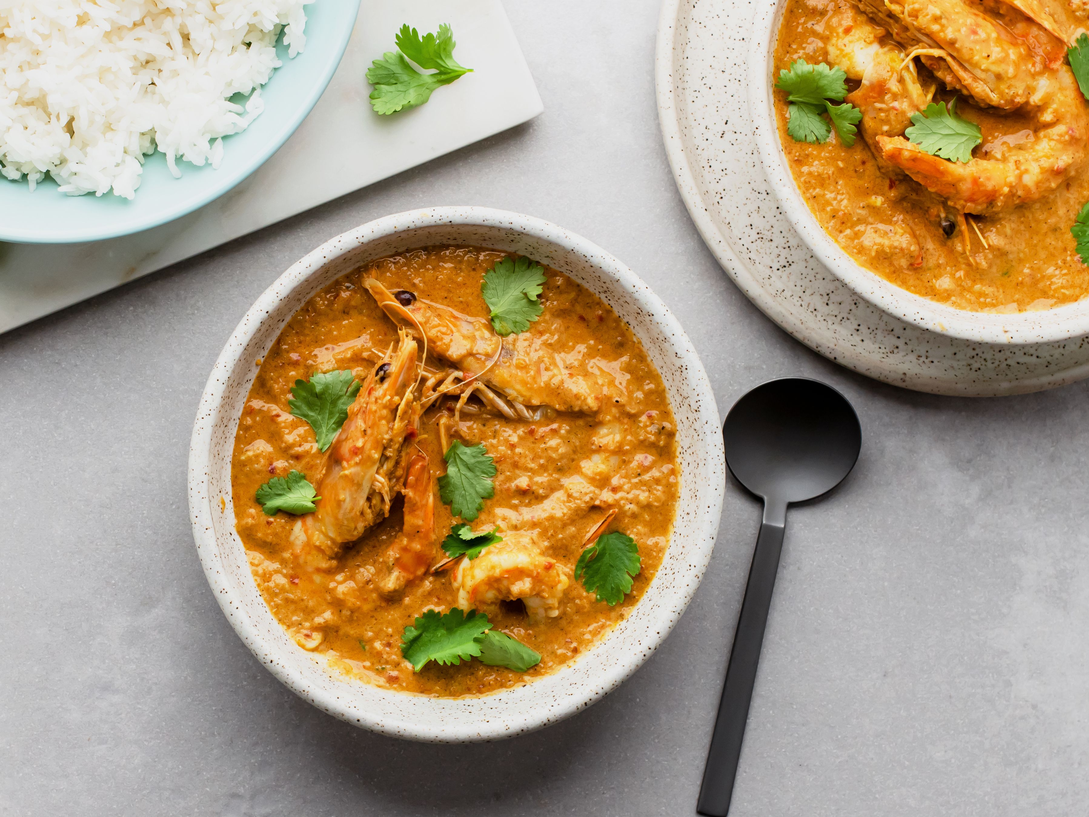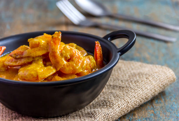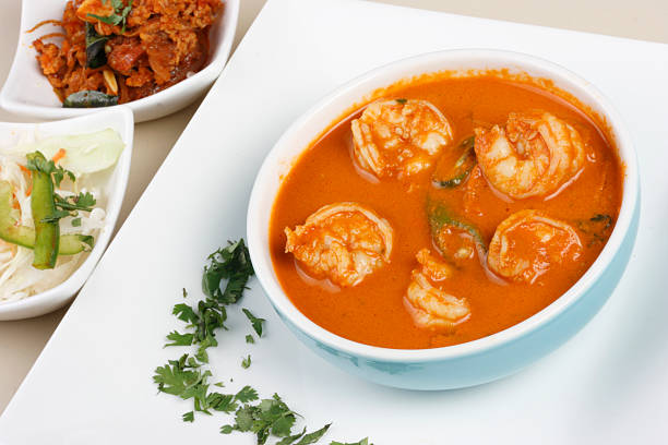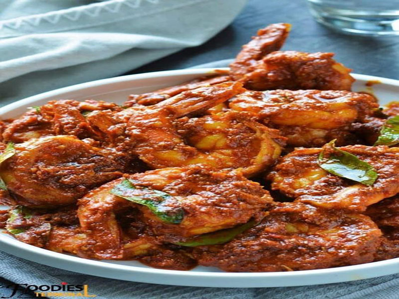 1 In a pan add oil, mustard seeds, curry leaves and grated coconut. Cook the prawns (with tails) from both sides (2 minutes each).