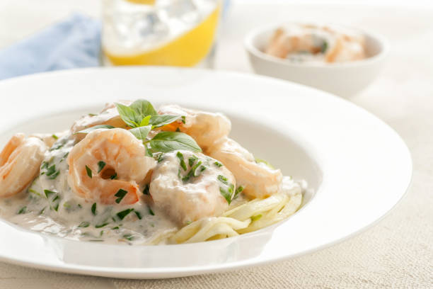 1 In a bowl adds the prawns that have been de-shelled, de-veined.