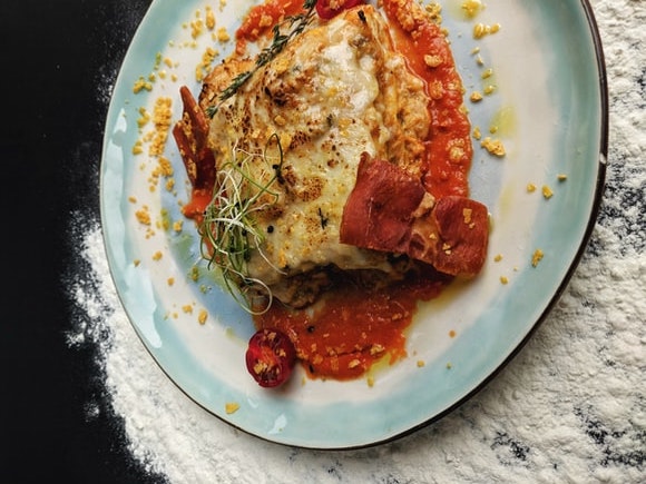 Bake 10-12 minutes or until bubbling and cheese is lightly browned. Scatter torn basil leaves on top and let rest for 10 minutes before serving.